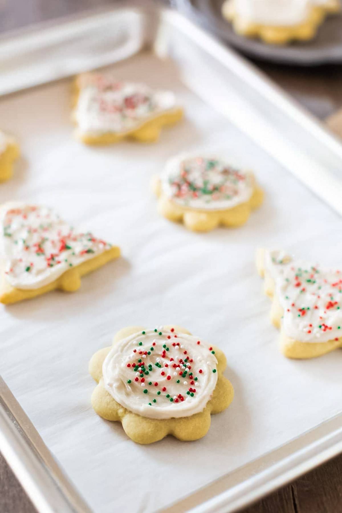 Hi there, We've made it to Day 7 of the 12 Days of Cookies and todayâs cookie is one that's almost too pretty to eatâAlmond Vanilla Sugar Cookies. Really, they are (but you'll definitely want to eat them anyway)! âď¸ These buttery, soft (easy-to-make) cut-out cookies have a melt-in-your mouth texture and just the right hint of vanilla and almond flavor to make them irresistible. And of course, they're topped with a sprinkle of sugar that makes them look sparkly and festive! Day Seven Almond...